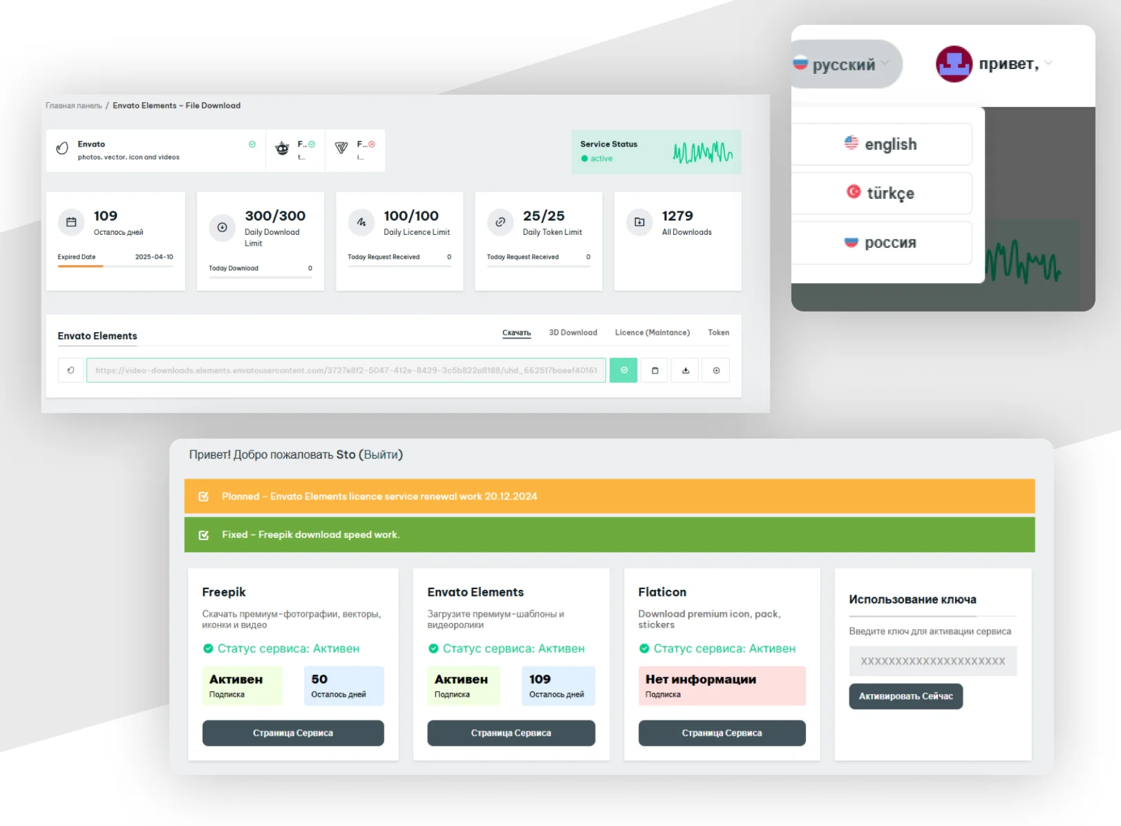 ⭐ The account does not work on the official Envato site directly — instead, it uses our optimized panel for faster access and downloads.